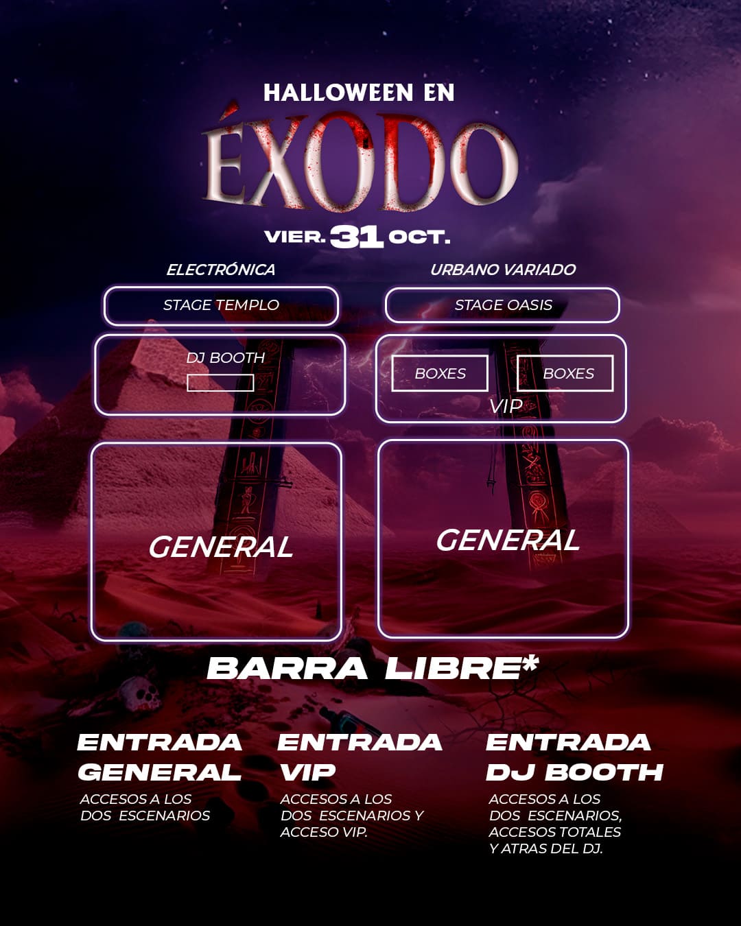 El misterio del antiguo Egipto llega para envolver la noche en una experiencia única de música, energía y magia. Bajo la mirada de las pirámides y los símbolos ancestrales, ÉXODO te transporta a un viaje sonoro donde pasado y futuro se encuentran.